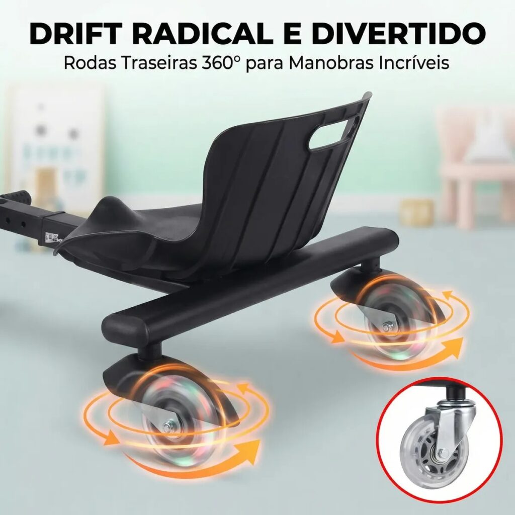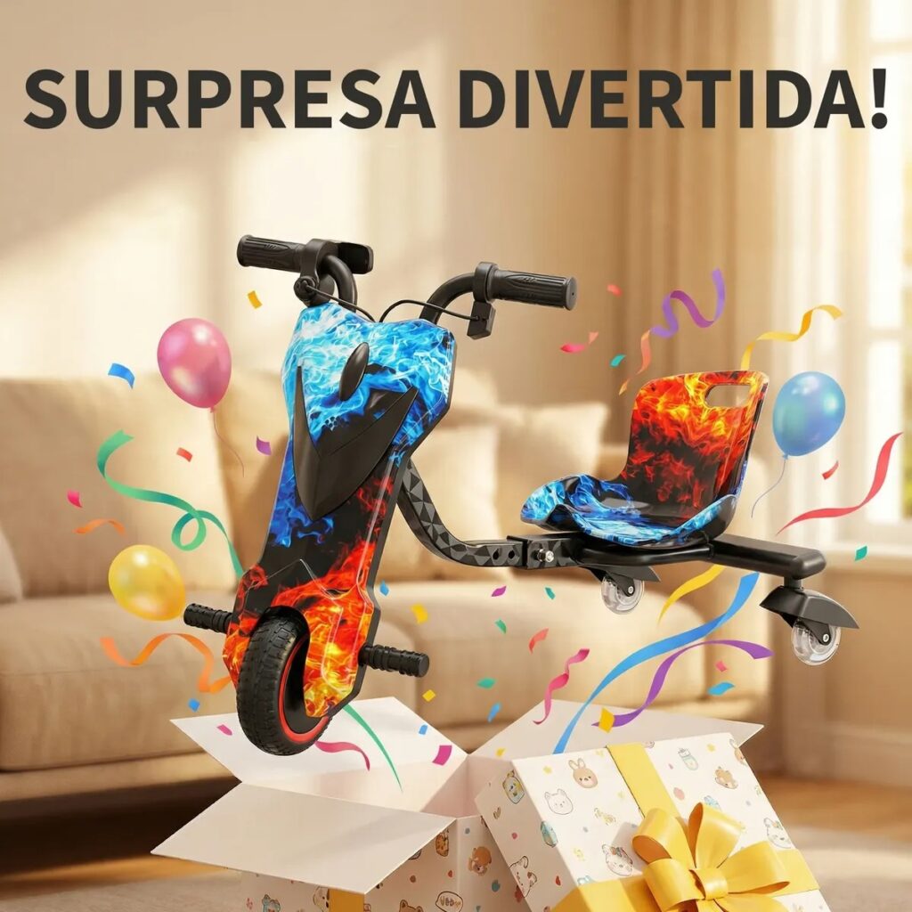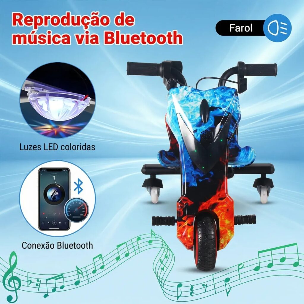 Este produto inclui corpo principal, bateria e carregador, oferecendo uma configuração completa. Comece agora! Divirta-se com seu filho!! Drift espetacular, com luzes LED coloridas, roda traseira PU luminosa, alto-falante Bluetooth integrado e roda traseira com giro 360°, tornando o passeio ainda mais divertido. Display de carga em tempo real para uso sem preocupações. Autonomia prolongada, equipado com bateria de lítio 36V 3,6Ah, controle preciso de energia e melhor desempenho no passeio. Sistema de partida por chave evita acionamentos acidentais. Passeio estável mesmo em terrenos irregulares; freio elétrico com parada suave e segura. Design ergonômico e divertido para crescimento felizDesign ergonômico que se adapta ao corpo, com manuseio suave. 3 velocidades ajustáveis. Conforto aprimorado para crescimento seguroChassi reforçado com capacidade máxima de carga de 75 kg; comprimento do chassi ajustável para diferentes alturas, com encosto traseiro largo e confortável. Modelo: BOLIN-PYC6N Motor: 180W (pico 250W) sem escovas Tempo de recarga: 4 horas Velocidade: 8–12 km/h Bateria: bateria de lítio 36V 3,6Ah Autonomia: 8–12 km Display: indicador de carga da bateria Pneu dianteiro: pneu maciço 6,5 polegadas Roda traseira: roda PU luminosaCarga máxima: 75 kg Dimensões da embalagem: 58,5 × 44 × 21 cm Peso líquido / bruto: 8 / 9 kg Garantia de fábrica: 12 MESES
